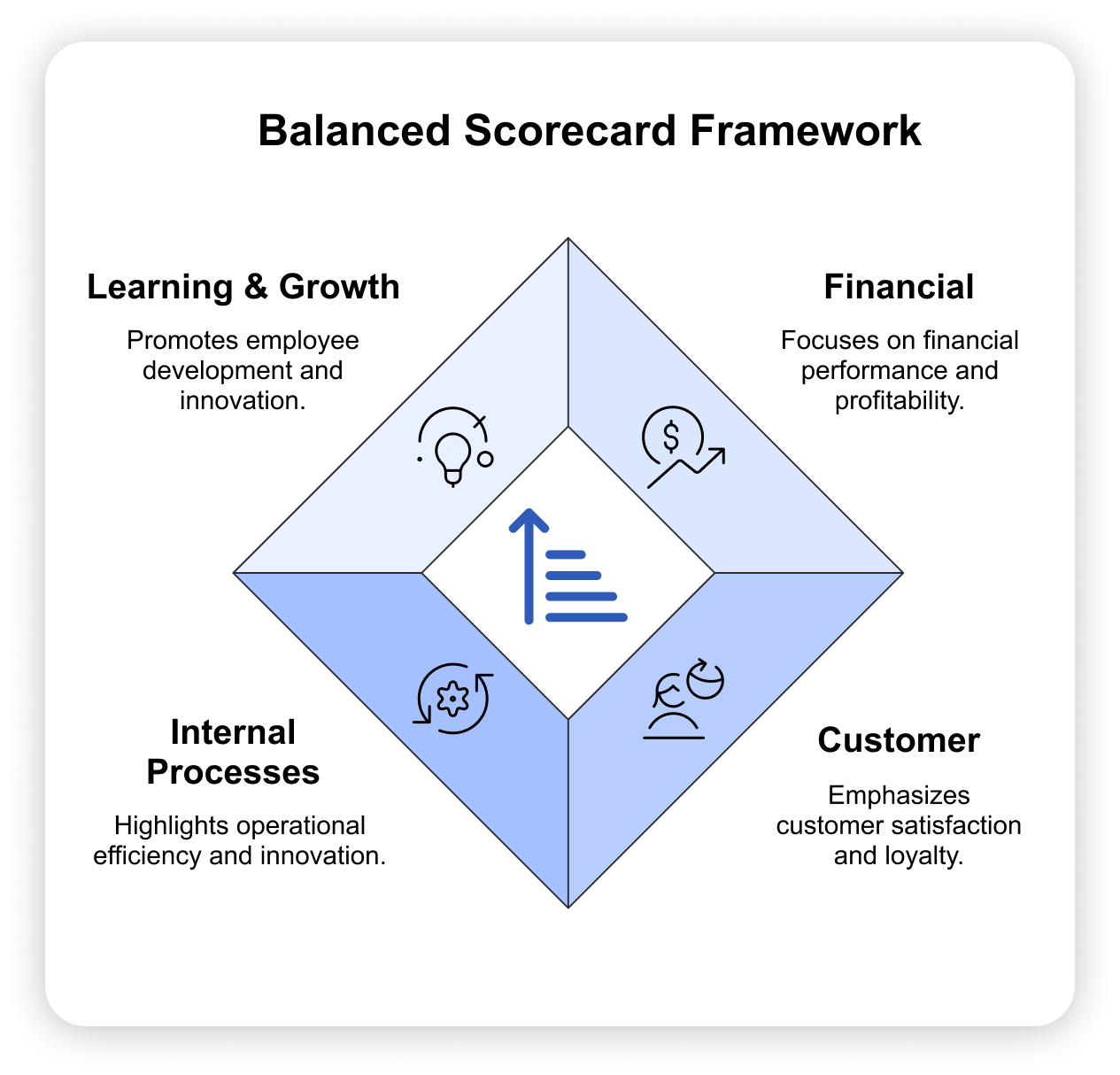 The Balanced Scorecard (BSC) is a proven strategic management framework developed by Dr. Robert Kaplan and Dr. David Norton. It helps organizations translate high-level strategy into measurable objectives across four key perspectives: